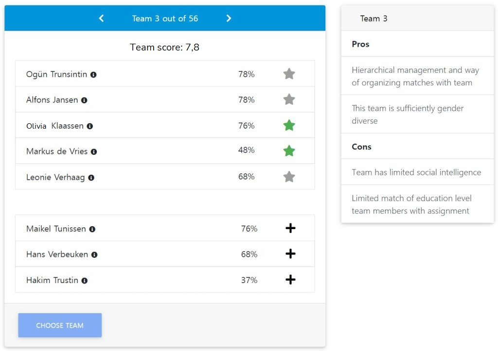 Onze tool stelt teams samen door het collectief van teamleden te matchen met de teamopdracht. Onze aanpak combineert voorspellende psychologische inzichten, AI-gestuurde matching en data-analyse om teams objectief en transparant samen te stellen.