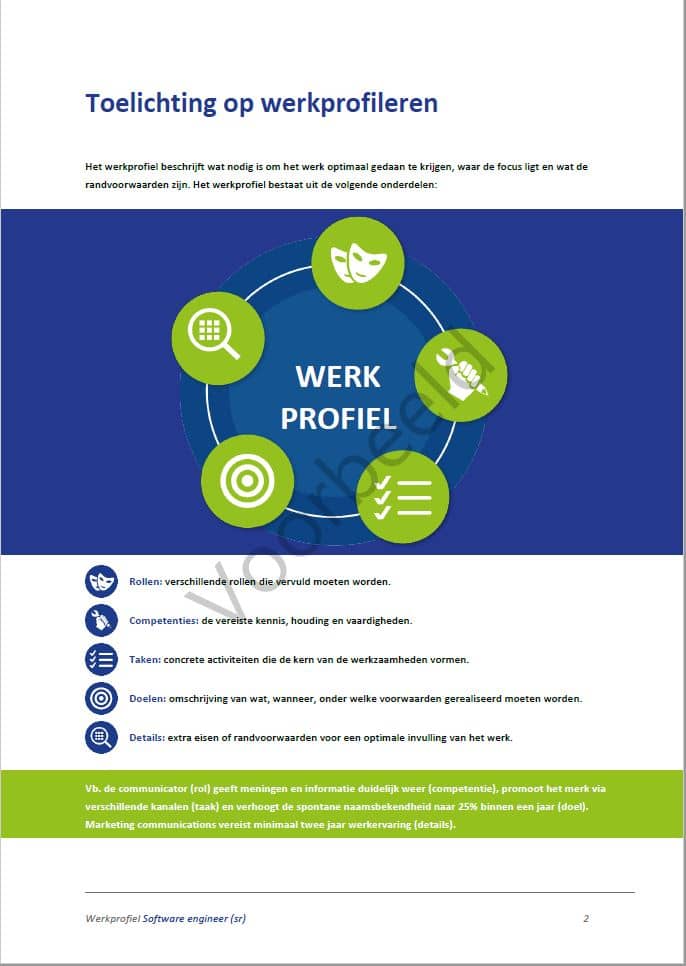 Hier begint het meestal. Het werkprofiel geeft in elk geval aan welke gedragscompetenties van belang zijn om een functie succesvol te kunnen uitoefenen.